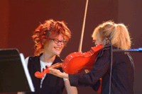 Vai, Guitar God with Lauren recklessly playing guitar |