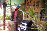 the parrot who guards the yard (a nannycam is hidden inside
